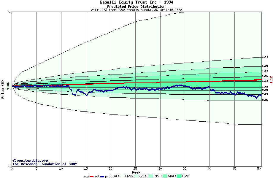 The following graph plots the year-to-date performance of the stock for 1994 compared to the probability calculated by a random walk model.