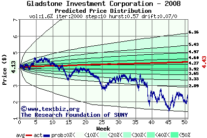 The following graph plots the year-to-date performance of the stock for 2008 compared to the probability calculated by a random walk model.