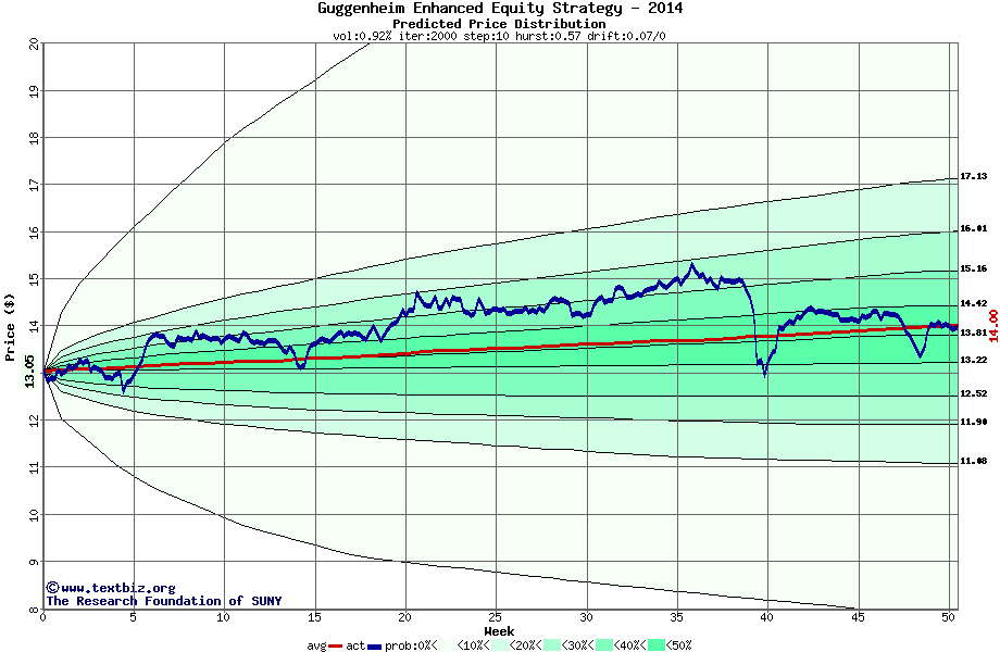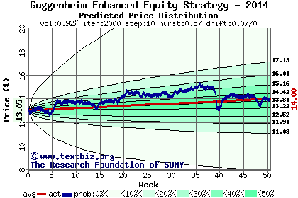 The following graph plots the year-to-date performance of the stock for 2014 compared to the probability calculated by a random walk model.