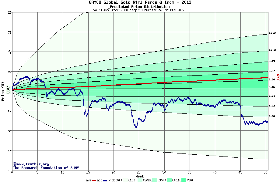 The following graph plots the year-to-date performance of the stock for 2013 compared to the probability calculated by a random walk model.
