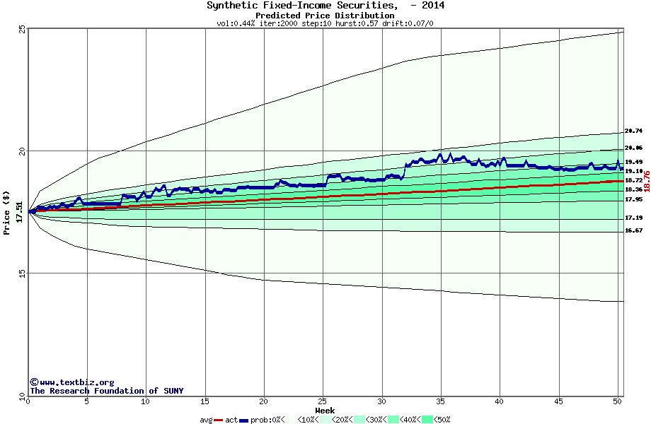 The following graph plots the year-to-date performance of the stock for 2014 compared to the probability calculated by a random walk model.