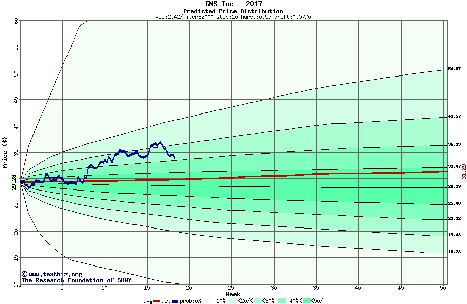 The following graph plots the year-to-date performance of the stock for 2017 compared to the probability calculated by a random walk model.