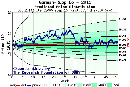 The high to date and low to date prices of the stock plotted against a random walk model for 2011 (what's this?).