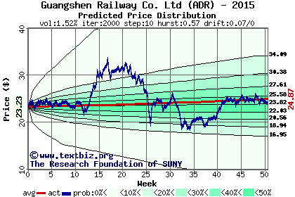 The following graph plots the year-to-date performance of the stock for 2015 compared to the probability calculated by a random walk model.