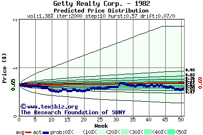 The following graph plots the year-to-date performance of the stock for 1982 compared to the probability calculated by a random walk model.