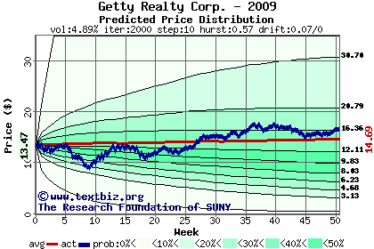 The following graph plots the year-to-date performance of the stock for 2009 compared to the probability calculated by a random walk model.