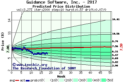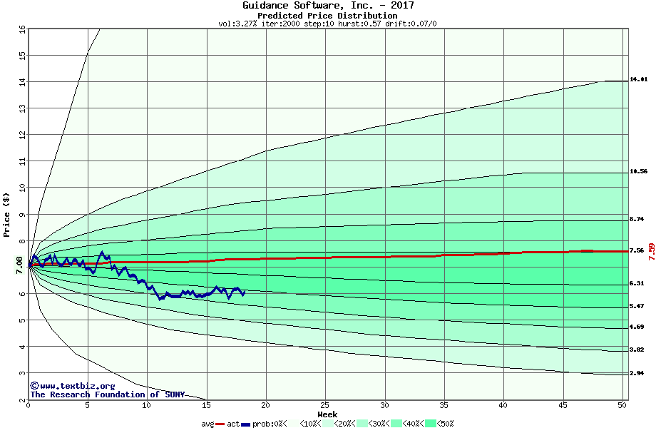 The following graph plots the year-to-date performance of the stock for 2017 compared to the probability calculated by a random walk model.