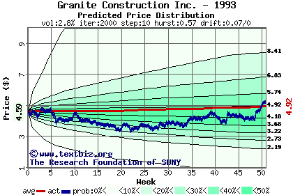 The following graph plots the year-to-date performance of the stock for 1993 compared to the probability calculated by a random walk model.