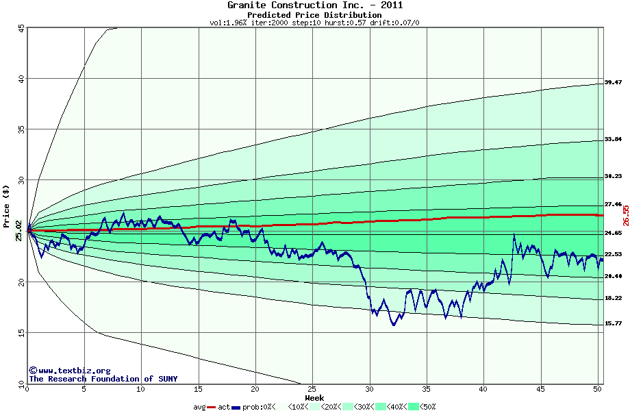 The following graph plots the year-to-date performance of the stock for 2011 compared to the probability calculated by a random walk model.