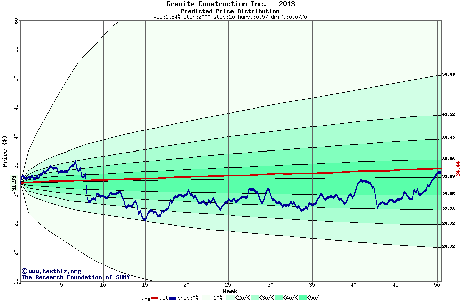 The following graph plots the year-to-date performance of the stock for 2013 compared to the probability calculated by a random walk model.