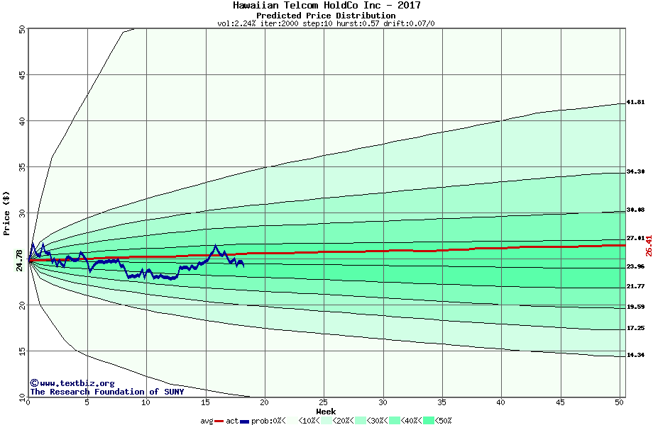 The following graph plots the year-to-date performance of the stock for 2017 compared to the probability calculated by a random walk model.