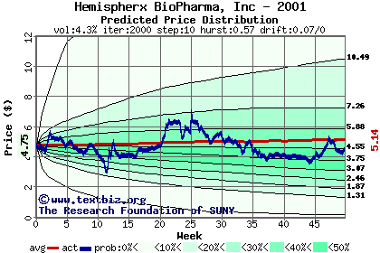 The following graph plots the year-to-date performance of the stock for 2001 compared to the probability calculated by a random walk model.