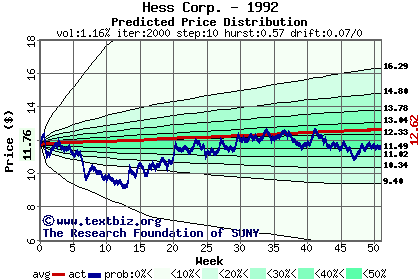 The following graph plots the year-to-date performance of the stock for 1992 compared to the probability calculated by a random walk model.