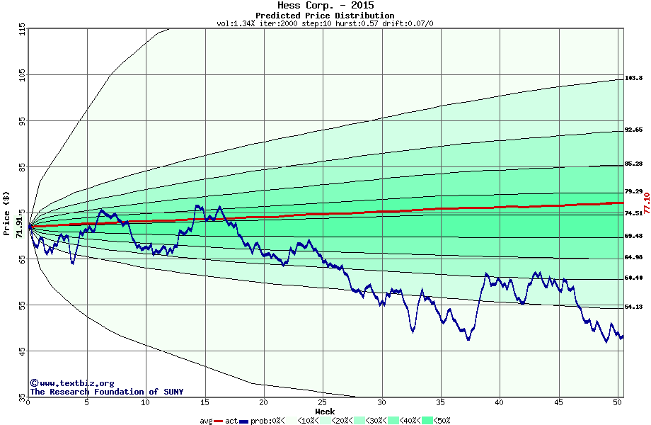 The following graph plots the year-to-date performance of the stock for 2015 compared to the probability calculated by a random walk model.