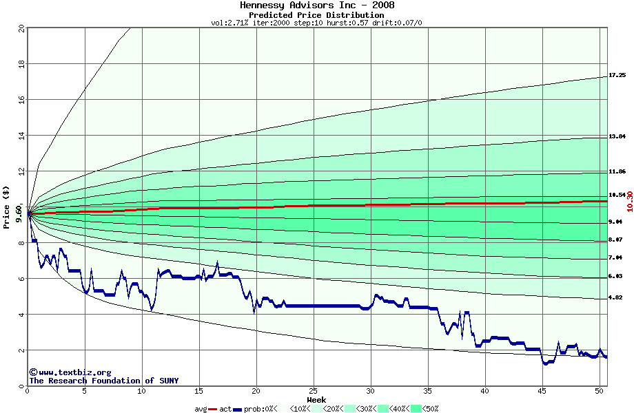 The following graph plots the year-to-date performance of the stock for 2008 compared to the probability calculated by a random walk model.