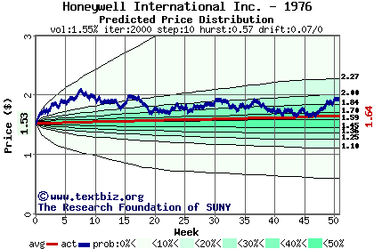 The following graph plots the year-to-date performance of the stock for 1976 compared to the probability calculated by a random walk model.