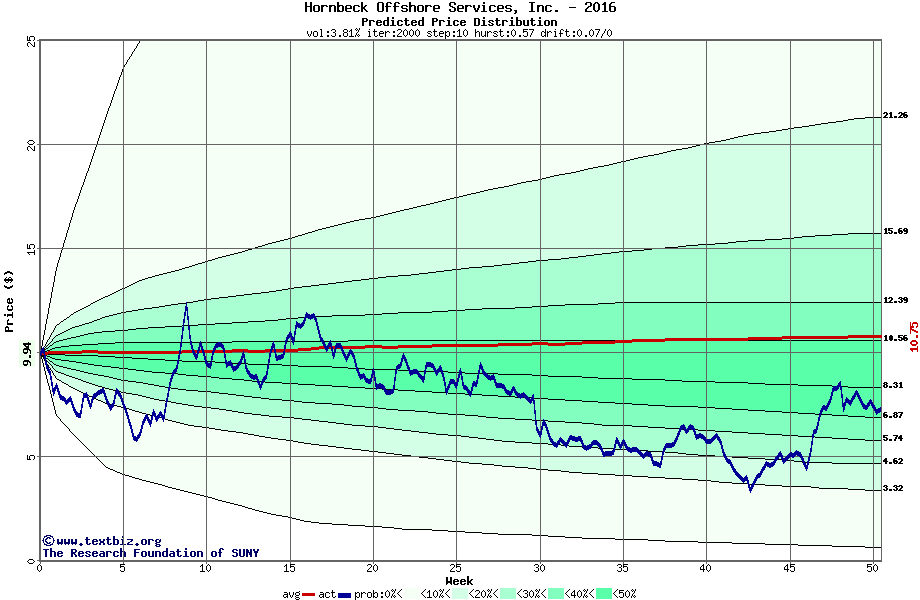 The following graph plots the year-to-date performance of the stock for 2016 compared to the probability calculated by a random walk model.