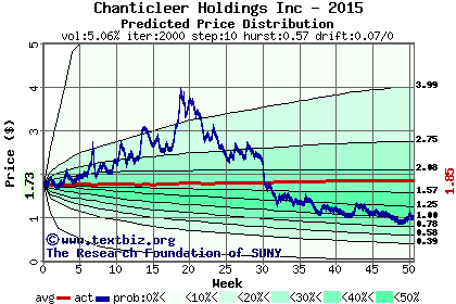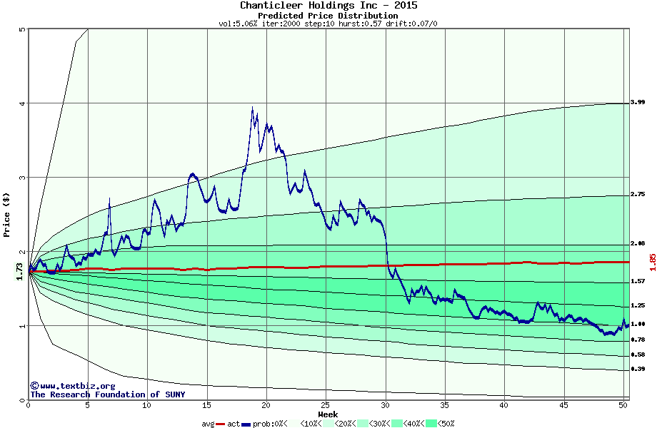 The high to date and low to date prices of the stock plotted against a random walk model for 2015 (what's this?).