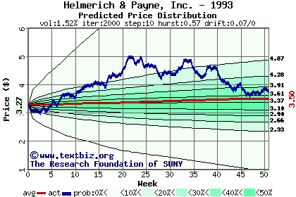 The following graph plots the year-to-date performance of the stock for 1993 compared to the probability calculated by a random walk model.