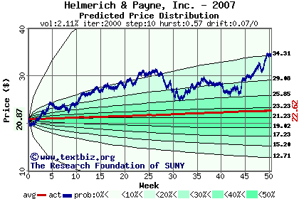 The following graph plots the year-to-date performance of the stock for 2007 compared to the probability calculated by a random walk model.