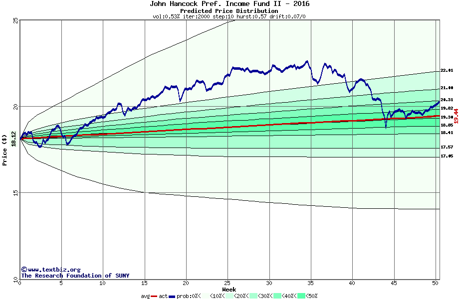 The following graph plots the year-to-date performance of the stock for 2016 compared to the probability calculated by a random walk model.
