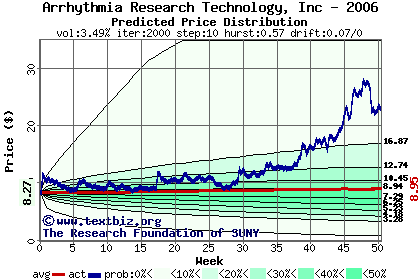 The following graph plots the year-to-date performance of the stock for 2006 compared to the probability calculated by a random walk model.
