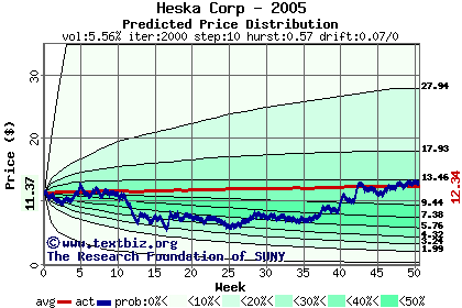 The following graph plots the year-to-date performance of the stock for 2005 compared to the probability calculated by a random walk model.