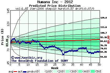 The following graph plots the year-to-date performance of the stock for 2012 compared to the probability calculated by a random walk model.