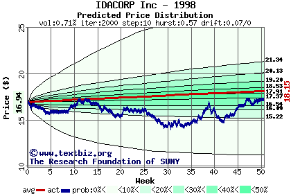 The following graph plots the year-to-date performance of the stock for 1998 compared to the probability calculated by a random walk model.