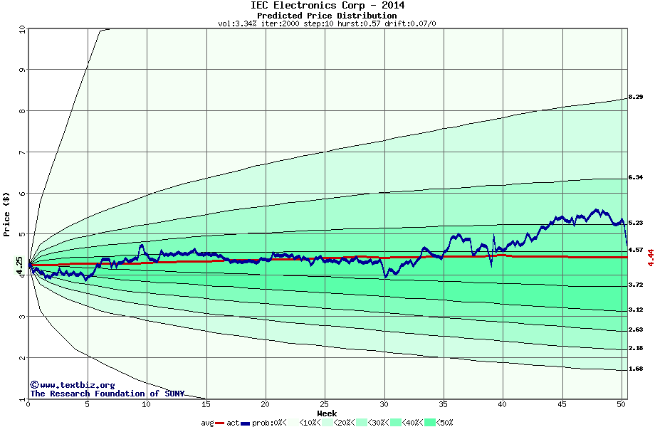 The following graph plots the year-to-date performance of the stock for 2014 compared to the probability calculated by a random walk model.