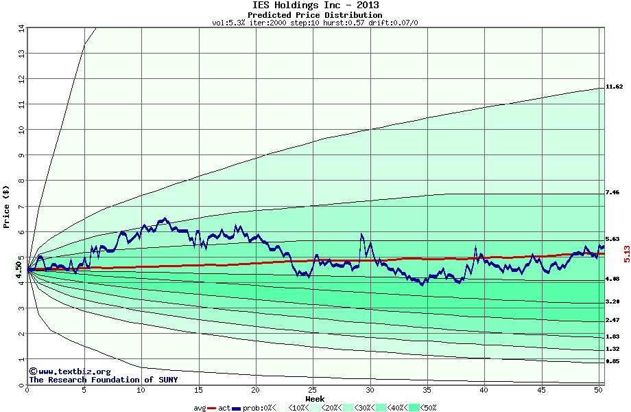 The following graph plots the year-to-date performance of the stock for 2013 compared to the probability calculated by a random walk model.