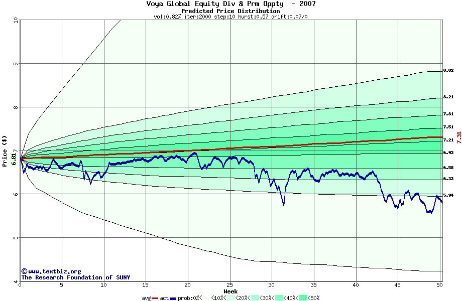 The following graph plots the year-to-date performance of the stock for 2007 compared to the probability calculated by a random walk model.