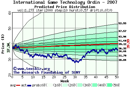 The following graph plots the year-to-date performance of the stock for 2007 compared to the probability calculated by a random walk model.