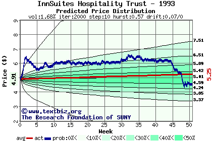 The following graph plots the year-to-date performance of the stock for 1993 compared to the probability calculated by a random walk model.