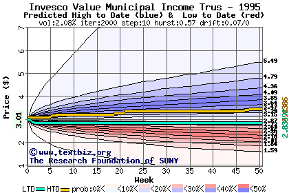 The high to date and low to date prices of the stock plotted against a random walk model for 1995 (what's this?).
