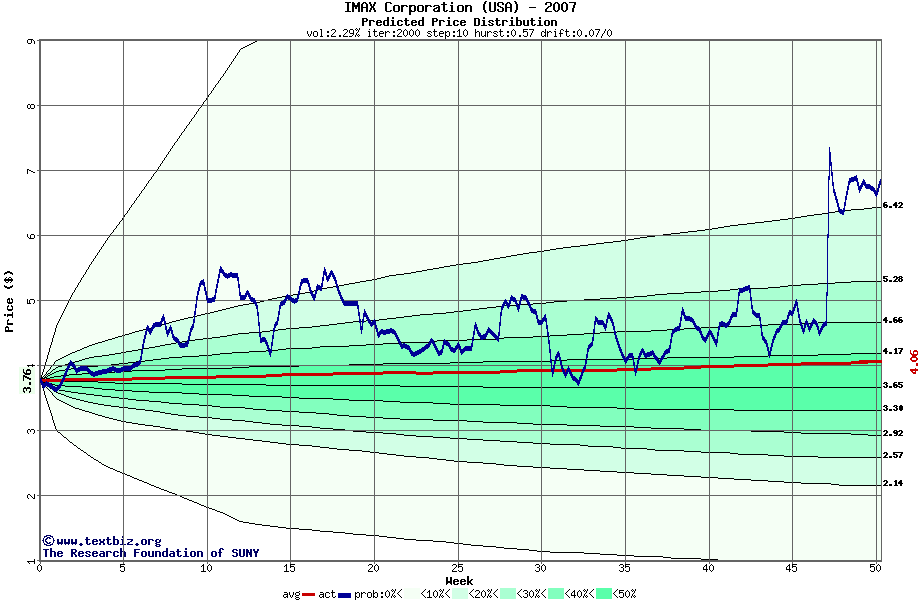 The following graph plots the year-to-date performance of the stock for 2007 compared to the probability calculated by a random walk model.