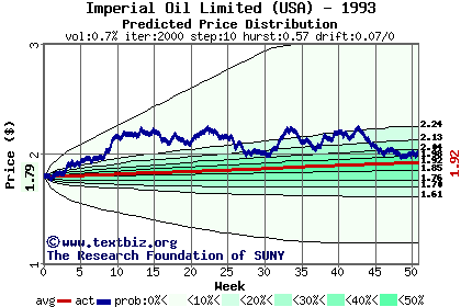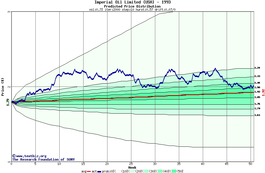 The following graph plots the year-to-date performance of the stock for 1993 compared to the probability calculated by a random walk model.