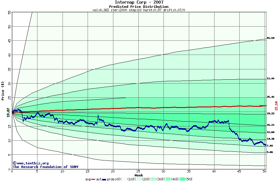 The following graph plots the year-to-date performance of the stock for 2007 compared to the probability calculated by a random walk model.