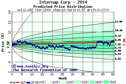 The following graph plots the year-to-date performance of the stock for 2014 compared to the probability calculated by a random walk model.