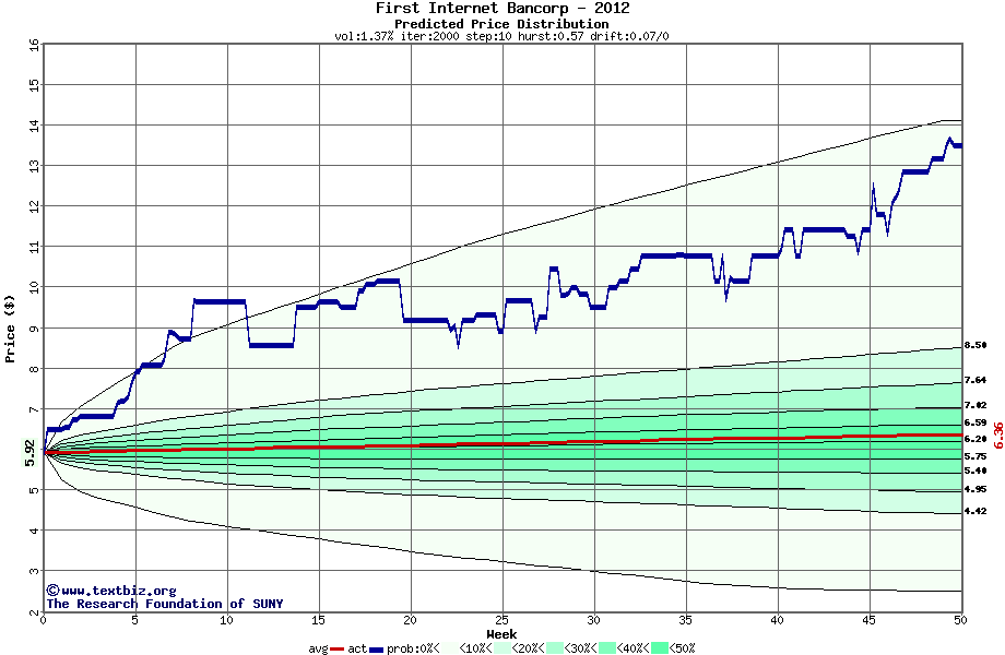 The following graph plots the year-to-date performance of the stock for 2012 compared to the probability calculated by a random walk model.