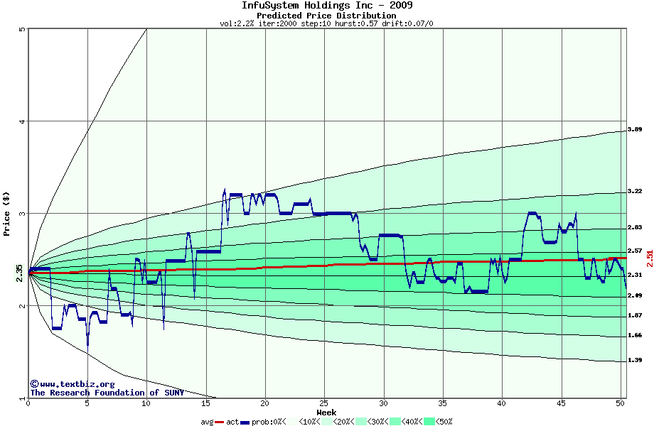 The following graph plots the year-to-date performance of the stock for 2009 compared to the probability calculated by a random walk model.