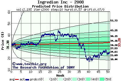 The following graph plots the year-to-date performance of the stock for 2008 compared to the probability calculated by a random walk model.