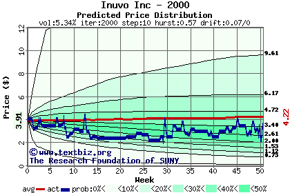 The following graph plots the year-to-date performance of the stock for 2000 compared to the probability calculated by a random walk model.