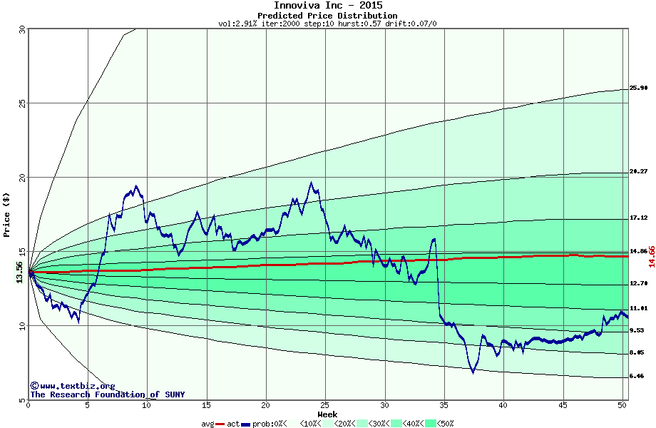 The following graph plots the year-to-date performance of the stock for 2015 compared to the probability calculated by a random walk model.