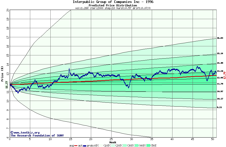 The following graph plots the year-to-date performance of the stock for 1996 compared to the probability calculated by a random walk model.