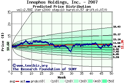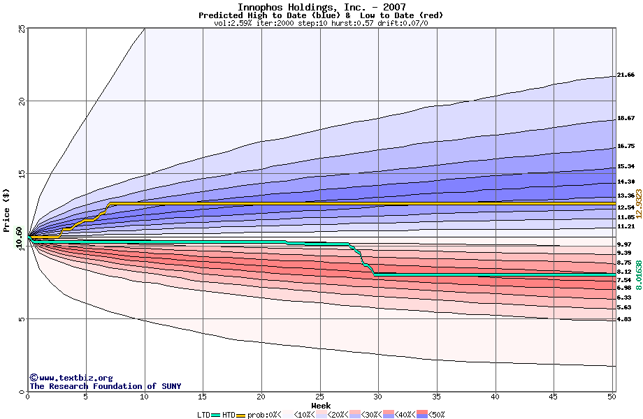 The following graph plots the year-to-date performance of the stock for 2007 compared to the probability calculated by a random walk model.