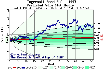 The following graph plots the year-to-date performance of the stock for 1997 compared to the probability calculated by a random walk model.