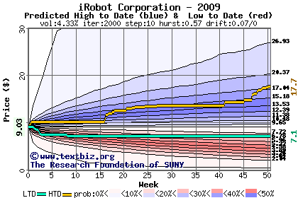 The following graph plots the year-to-date performance of the stock for 2009 compared to the probability calculated by a random walk model.
