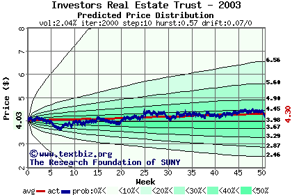 The following graph plots the year-to-date performance of the stock for 2003 compared to the probability calculated by a random walk model.