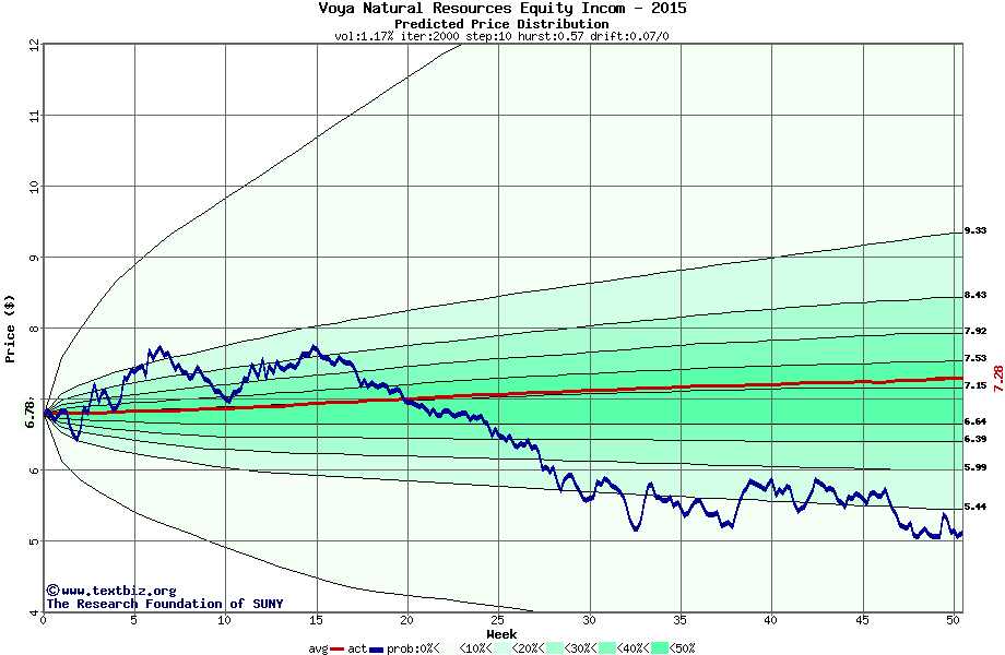 The following graph plots the year-to-date performance of the stock for 2015 compared to the probability calculated by a random walk model.